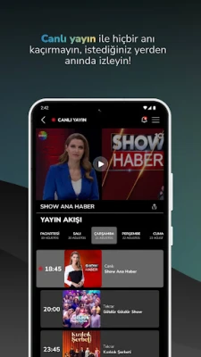 With ShowTV application, it is possible to access current broadcast stream information, programs,TV series summary, visuals, fragments and videos, popular TV programs, TV series in archive and ShowTV News sections. You can watch ShowTV live broadcast on your phone without interruption and with high image quality.